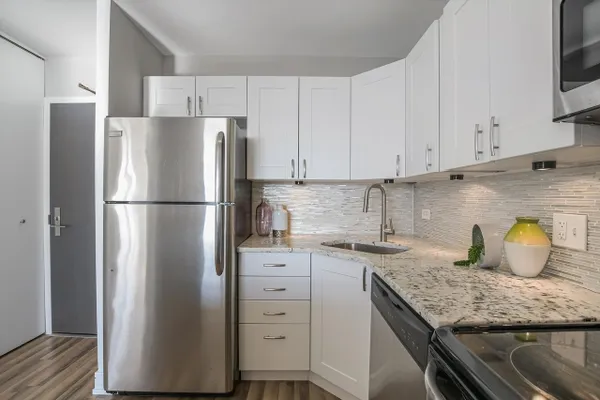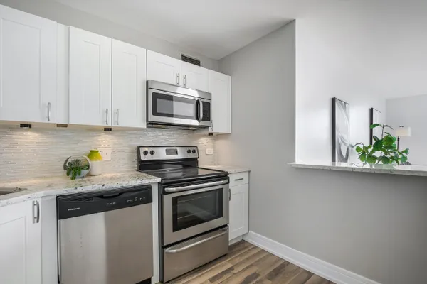 A beautiful remodel 10 years ago, results in a still great looking home today. Enter the 1 bedroom home and you are drawn to the light from the views south and west to the city & Wrigley Field. The kitchen includes white cabinets, quartz countertops, stainless steel appliances, and a breakfast bar overlooking the living area. The enclosed bedroom includes large windows with south views and a closet for storage. The bath includes a newly refreshed vanity, and a shower /tub combo. This home has been freshly painted head to toe, and has newly installed window coverings. The building includes a 24 hour door staff, exercise facilities, coin laundry, outdoor pool, basketball & tennis courts. Additional storage for bikes and belongings are also available. A block from Lake Michigan and lakefront parks. Steps to CTA and easy access to major expressways. Enjoy nightlife, restaurant and shopping within walking distance. This ideal location and full amenity building are calling your name!