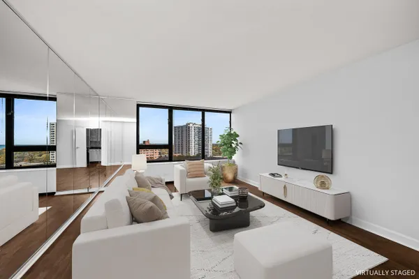 Enjoy the serenely expansive view of the lake, park & harbor from this lovely updated large 1 BDRM condo. Freshly painted and brand new engineered hardwood flooring throughout. The kitchen boasts brand new stainless steel appliances: Refrigerator, stove, and dishwasher, plus new faucet. Large bedroom with great closets, plus loads of other closet space for linens, coats, and pantry items. Very well-managed full amenity building. You will love all of the amenities available: Outdoor pool, patio, sundeck, grills, gardens, outdoor basketball and tennis courts, fitness center, bike room, laundry room, party room, and a 24/7 doorman. Assessments include heat, A/C and cable. Garage/no wait valet parking is available. Close to the lake, public transportation, in the heart of it all.
