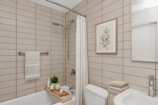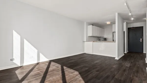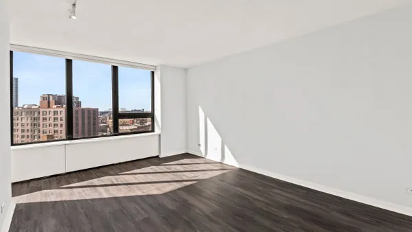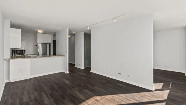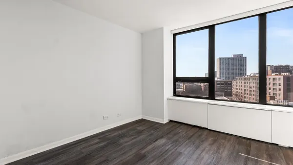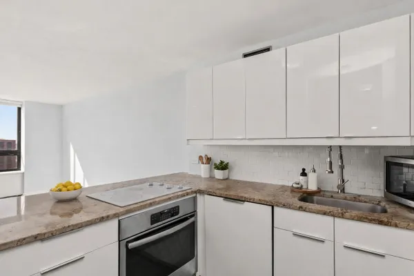 Move-in ready Junior One Bedroom, filled with natural light, this sun-drenched convertible one-bedroom offers a smart layout and excellent value. The south-facing exposure has amazing downtown views and highlights the open-concept kitchen, featuring granite countertops, white cabinetry, and a breakfast bar, ideal for everyday living and entertaining. New flooring runs throughout the unit, and the bedroom area is thoughtfully designed with nice sized closet to maximize storage and functionality. Enjoy a resort-style lifestyle in a full-amenity building offering a massive sundeck, outdoor pool, fire pits, and a modern fitness center. Recreational amenities include basketball, tennis, and pickleball courts, along with a dedicated on-site dog run. Outstanding value: Monthly assessments cover heat, A/C, cable, and high-speed internet-electricity is the only separate utility. The building features 24-hour door staff, professional management, and leased garage parking. Pet-friendly for pets up to 50 lbs.